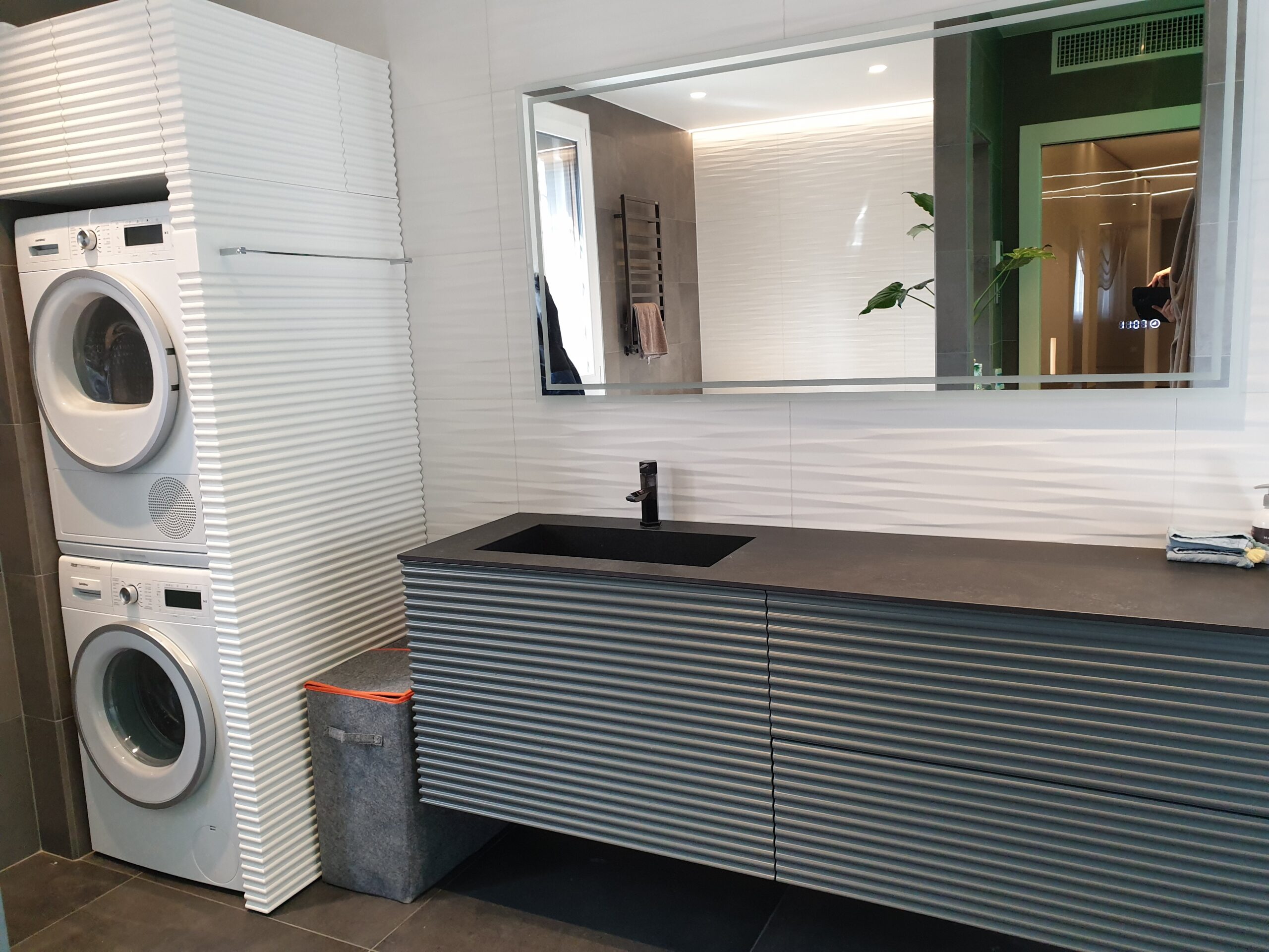 Oggi siamo una delle pochissime aziende in Italia (e l'unica realtà locale) in grado di offrire insieme ad una ristrutturazione anche un servizio di realizzazione di mobili complementari su misura e personalizzati, dall’armadio in nicchia al mobile portalavatrice e portasciugatrice, sempre perfettamente coordinati con il mobile principale (portalavabo). Col tempo abbiamo ampliato questa offerta anche ai piatti doccia e ai box doccia su misura e personalizzati, sempre coordinati con il mobile principale.