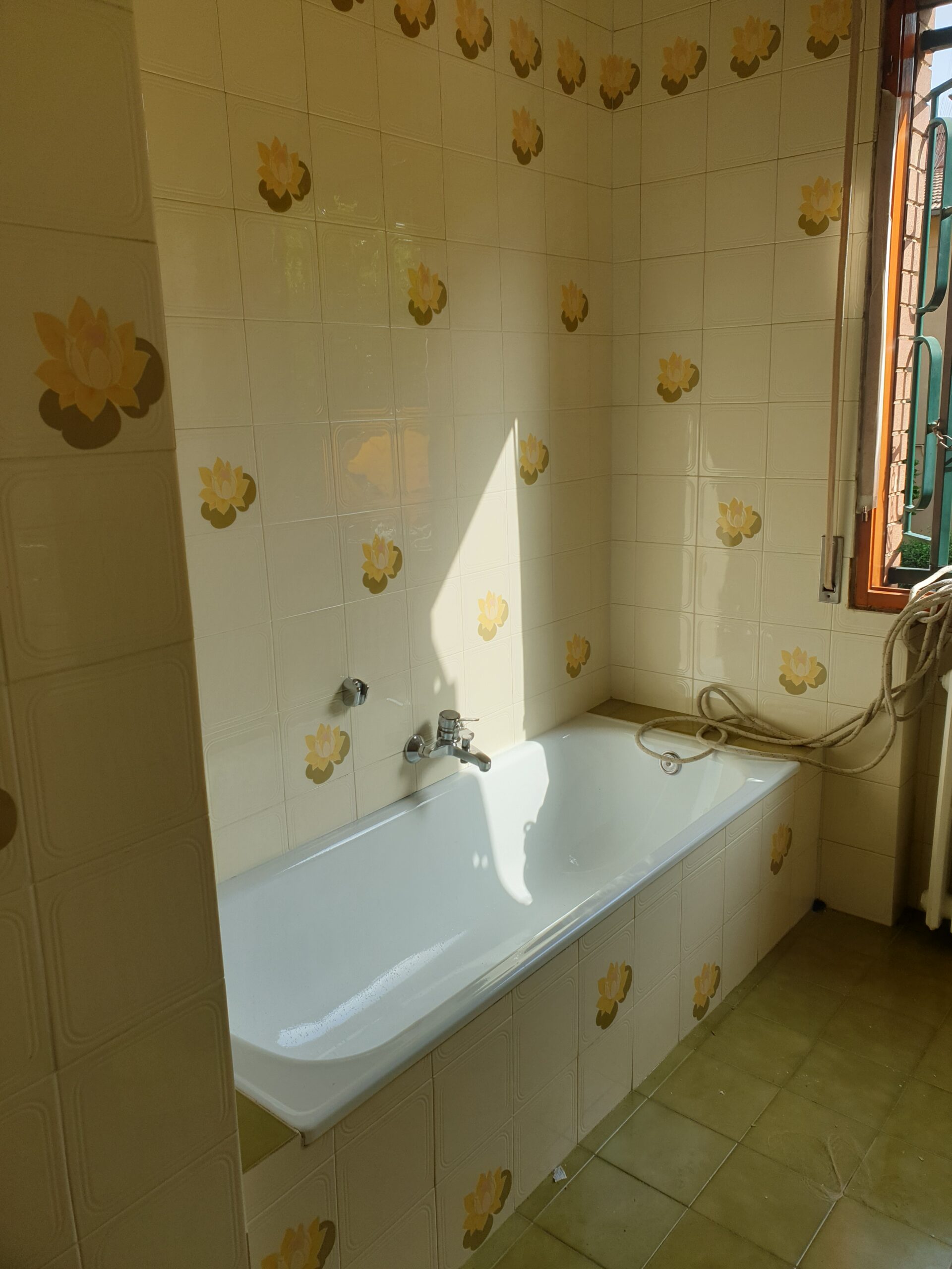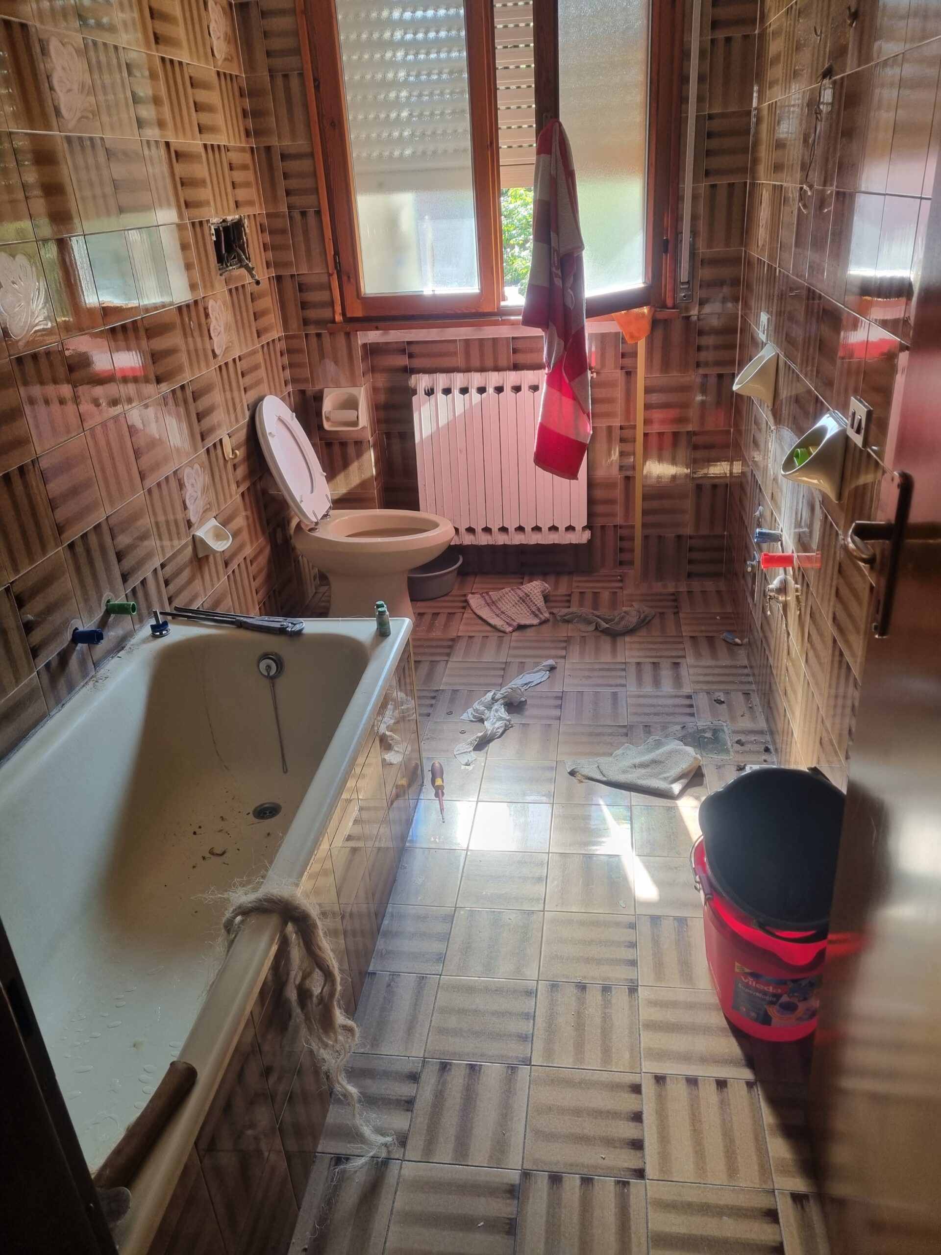 Posizionati su un'immagine qualsiasi per scoprire com'era il bagno prima dei lavori.